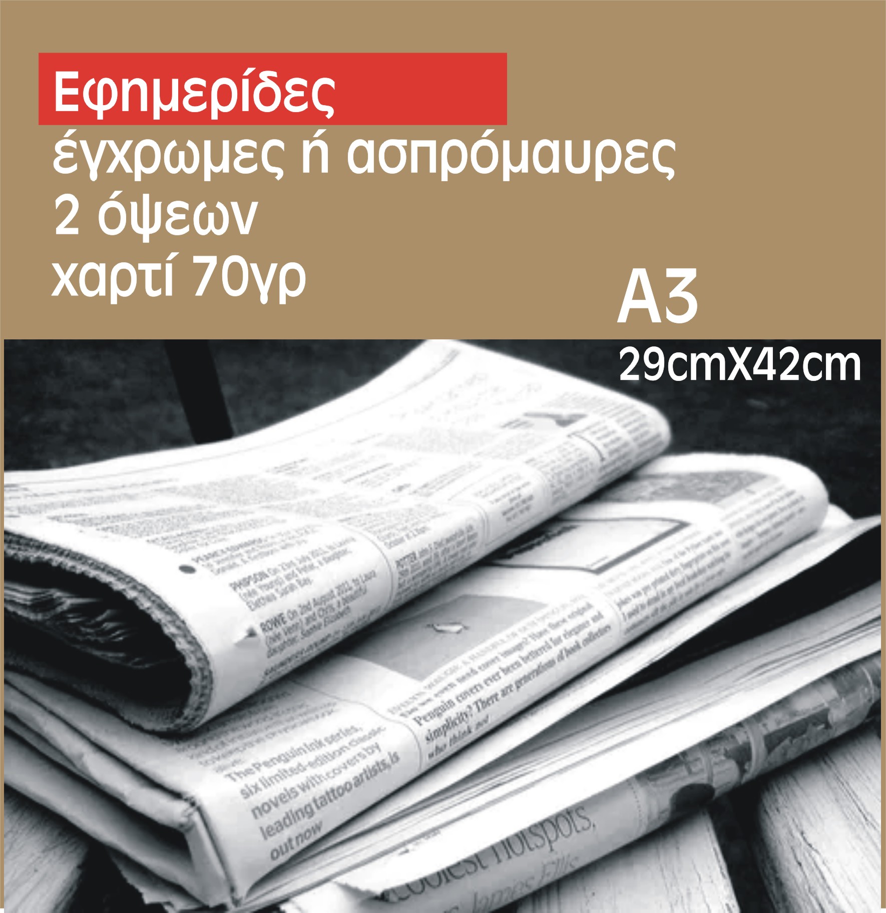 αναλαμβάνουμε το δημιουργικό και την εκτύπωση εφημερίδων ημερήσιων,εβδομαδιαίων και μηνιαίων