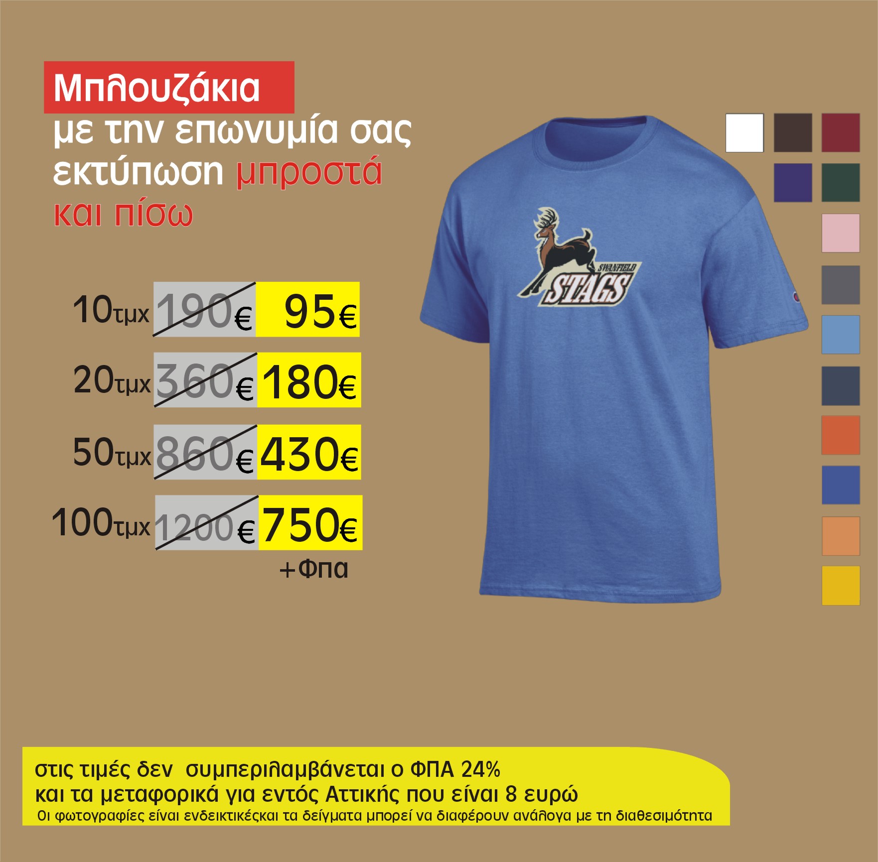 σε διάφορα χρώματα και με τη δυνατότητα μεταβλητών δεδομένων με το όνομα του κάθε ενος εκτός από το λογότυπο