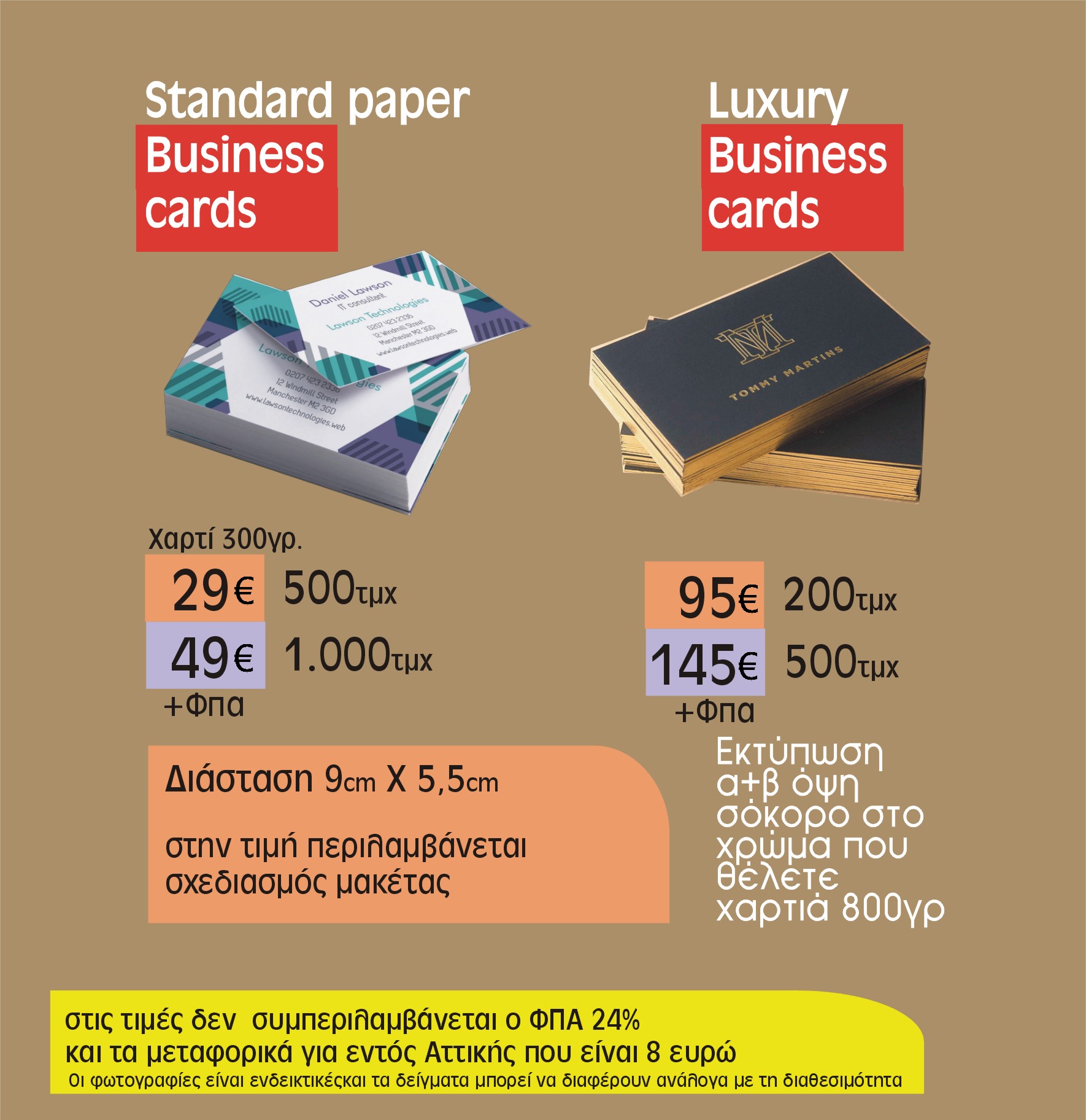 επαγγελματικές κάρτες σε χαρτί 300γρ με ή χωρίς πλαστικοποίηση